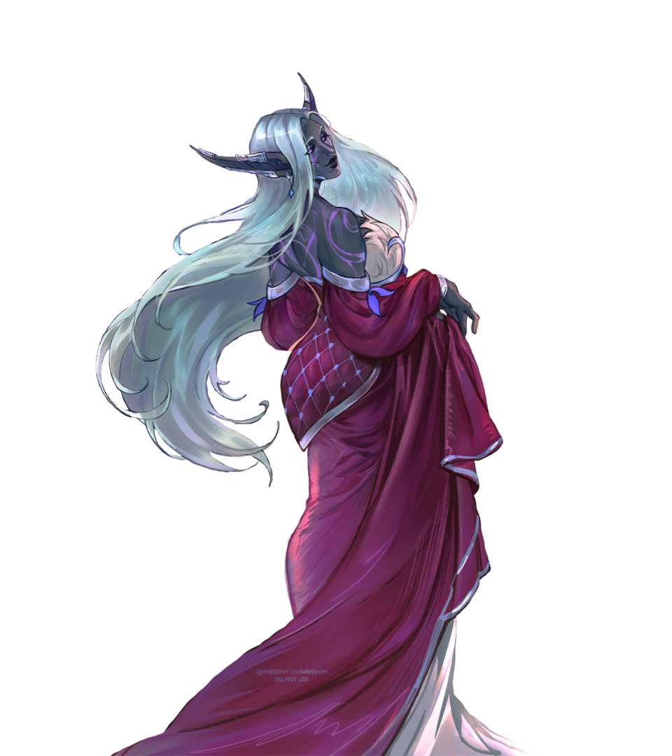 THE NOBLE For nearly five thousand years Marayen has been the matriarch of House Liothien. Next to guiding her family with her Arcane expertise to keep their craft running, she has been an active member of society for long. This involved attending most balls, feasts and taking those of other houses under her wing to tutor them, even if rumor also sparked that she was aiding the lower class. This was always dismissed, kept as the secret of Lady Liothien.
